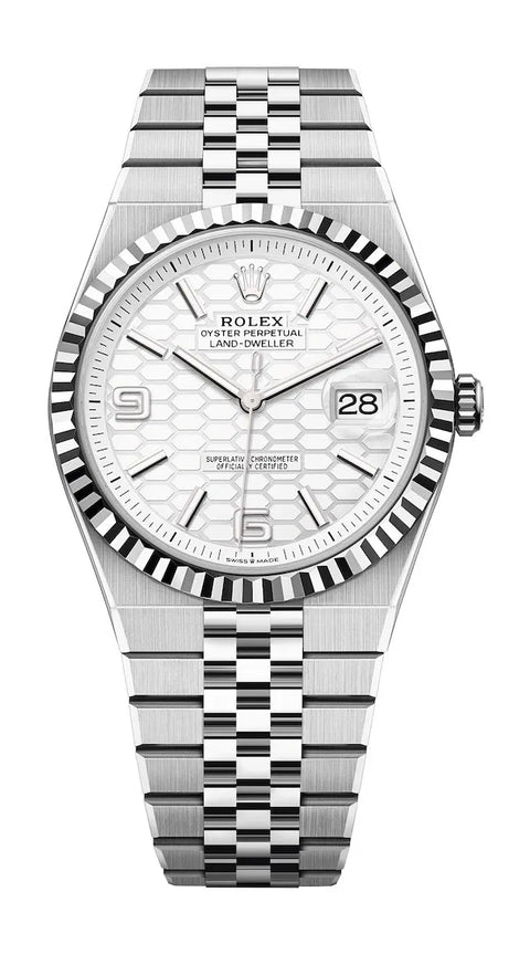 Certified as a Superlative Chronometer, the Land-Dweller upholds Rolex’s highest standards in accuracy, robustness, and reliability. Each model is tested in-house beyond COSC specifications, ensuring a precision rate of −2/+2 seconds per day. From the femtosecond-laser-etched dial to the patented ceramic bracelet inserts, the Land-Dweller embodies Rolex’s commitment to refining every element of watchmaking.